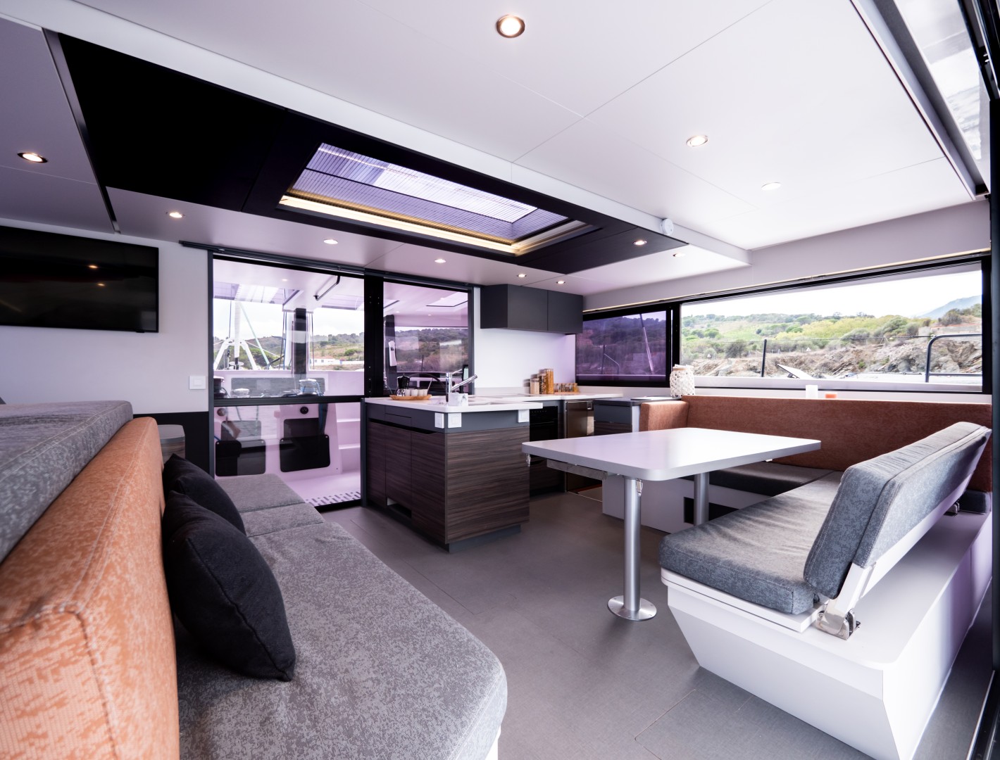 Die New Windelo 50 wurde in Zusammenarbeit mit den Architekten Christophe Barreau und Frédéric Neuman sowie der Designerin Charlotte Schiffer entworfen und ist ein schneller Blauwasser-Kreuzfahrtkatamaran mit einem elektrischen Antriebssystem, das zwei Elektromotoren umfasst, und einer bahnbrechenden Rumpfbauweise, bei der vulkanische Basaltlaminate verwendet werden, die eine nachhaltigere Alternative zu herkömmlichen Glasfasermatten darstellen.