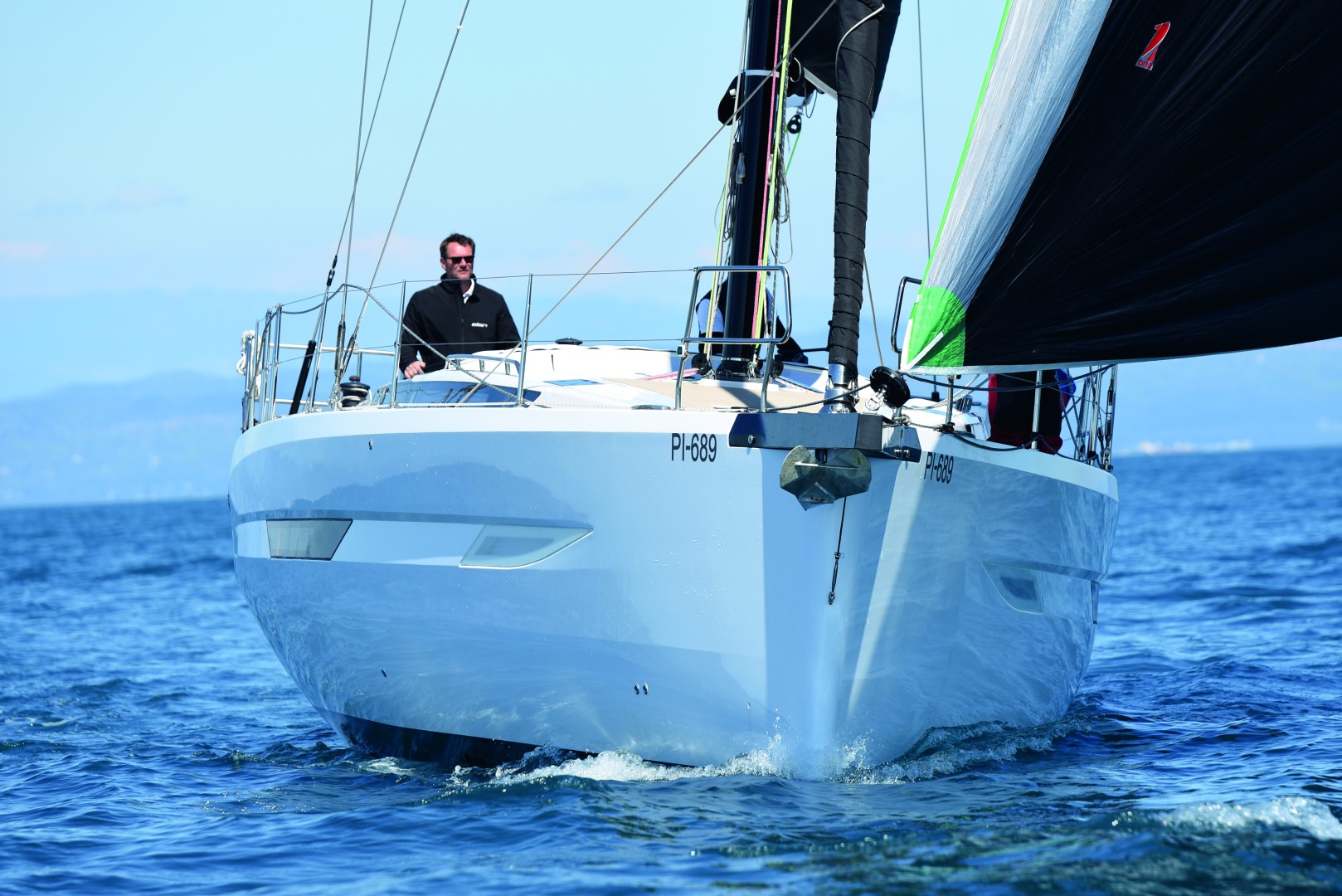 Tom Humphreys sagt dazu: „Hier wurde die Segelperformance einer Serienyacht auf ein neues Level gehoben. Wichtig dafür was ein aggressives Einsparen an Gewicht, was wiederum durch die fortschrittliche Bautechnologie bei Elan und das Composite Engineering von Gurit Composites möglich wurde. So konnten wir die Verdrängung minimieren, gleichzeitig die Stabilität erhöhen und damit auch die Segeltragfähigkeit ausreizen. Die geringe Verdrängung bedeutet eine relativ schmale Wasserlinie, aber an Deck hat das Schiff deutlich mehr Breite über alles. Die Chines sorgen für enorme Stabilität, sowie das Schiff krängt und sich auf die Chines legt.“ Tatsächlich, dieses riesige, breite Heck, welches so viel Segelpower vor allem Downwind und gleichzeitig so viel Platz in den Achterkabinen bringt, kann nur mit sorgfältig ausgefeilter Linienführung funktionieren. Ansonsten würde es einfach nur Widerstand erzeugen. So aber läuft das Schiff – Humphreys Yacht Design hat es geschafft.