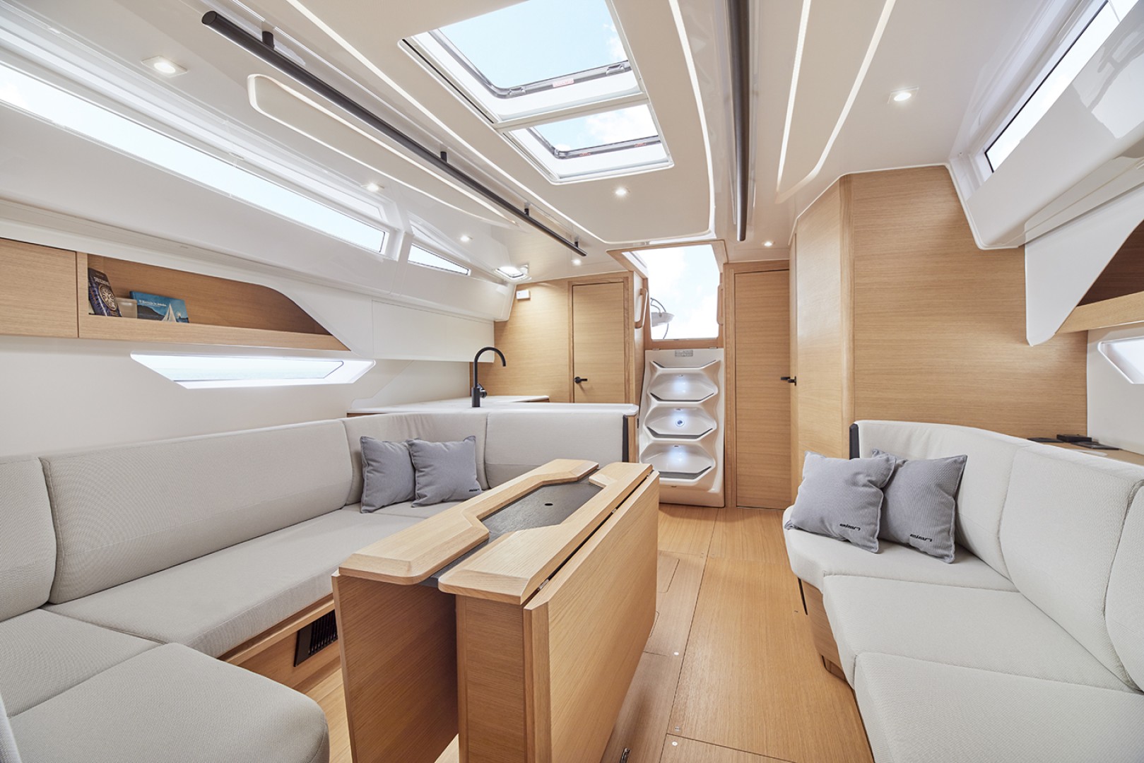 Unabhängig davon bleibt der Salon immer luftig und gross, hier lässt sich auch das U-Sofa an Steuerbord dank cleveren Designs noch ganz einfach in ein Doppelbett königlichen Ausmasses umbauen.